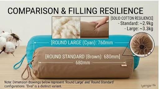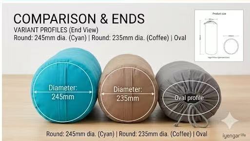 | Ergonomic Oval | 680mm x (Oval) | ~3.0kg | Deep restorative & heart-opening poses. |