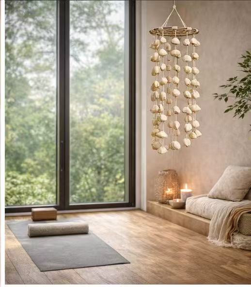A natural, handcrafted wind chime that brings a soft, peaceful atmosphere to any room.
