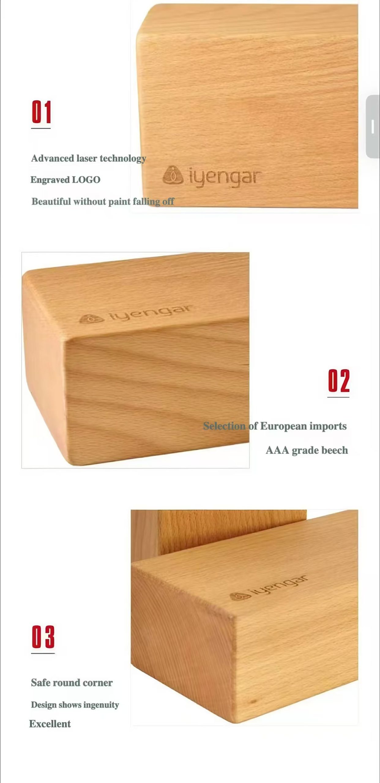 Made from 100% solid beechwood, this premium yoga block is strong and durable, offering steady support to help improve alignment, deepen stretches, and move more safely into poses. Its standard size and smooth, even finish provide a comfortable grip, suitable for yogis of all levels.
