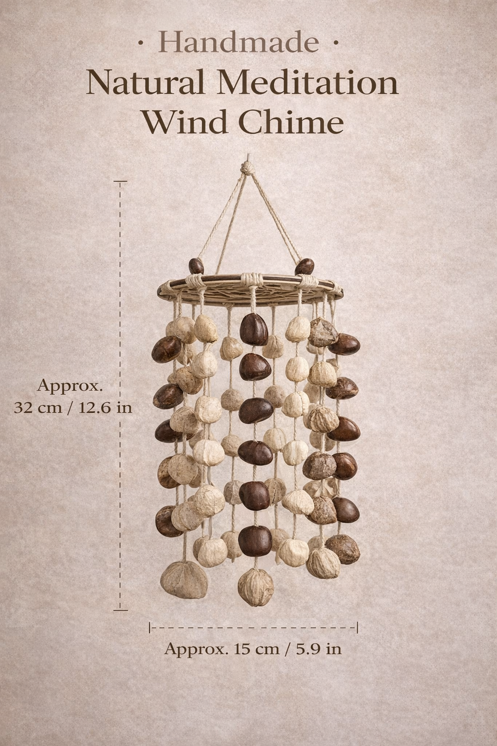 This Handmade Natural Meditation Wind Chime is crafted from earthy, natural elements and designed to create a soft, humming sound when the breeze moves through it. The tone is gentle—more like a warm, airy resonance than a sharp chime—helping your space feel quieter, steadier, and more grounded.