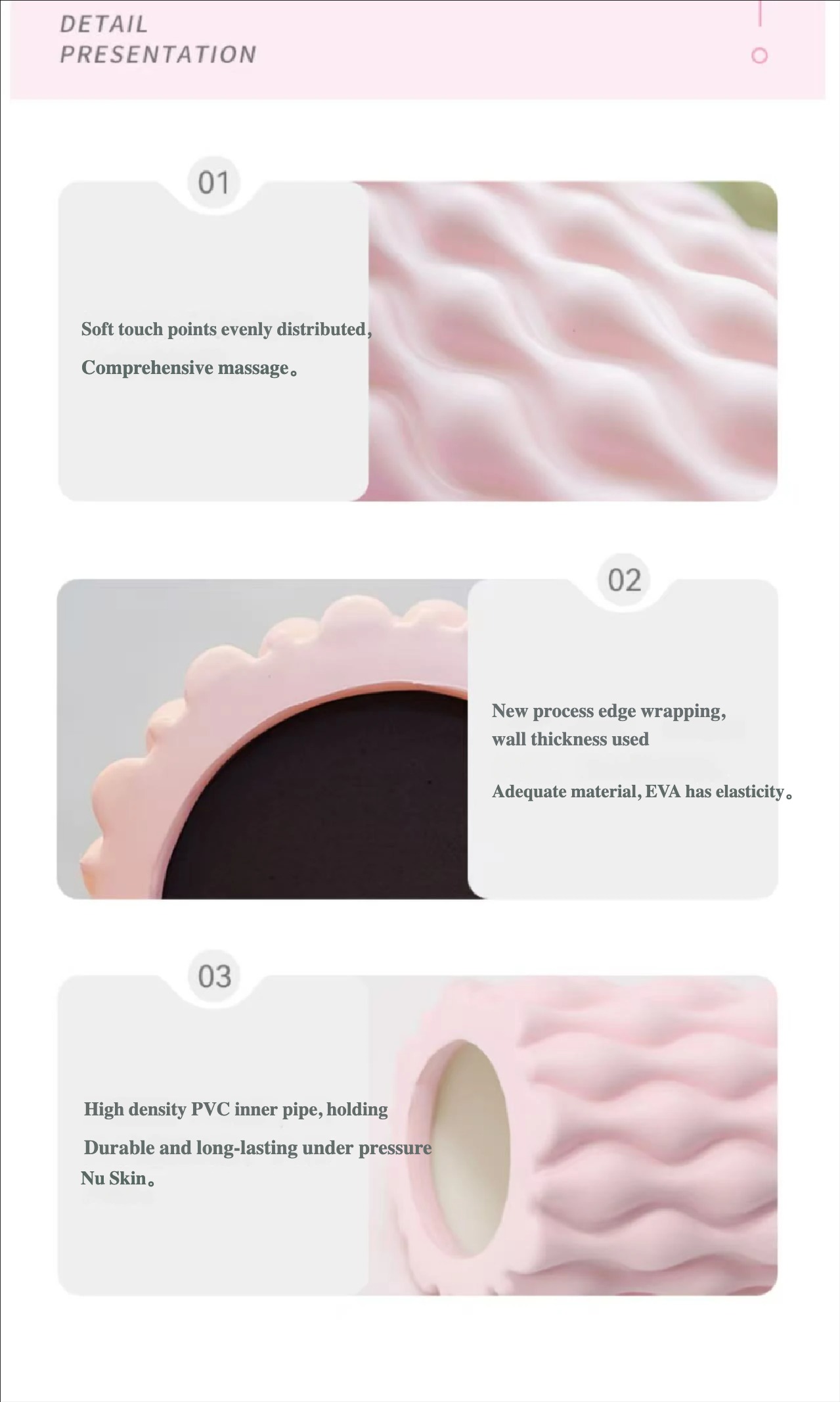 Relieve muscle tightness, improve flexibility, and recover faster with the Shining Ladies 3D EVA Foam Roller. Designed with a 3D droplet-textured surface, it simulates fingertip pressure to deeply massage sore areas without sharp pain—helping release tension and reduce fatigue after workouts, yoga, or long workdays.
