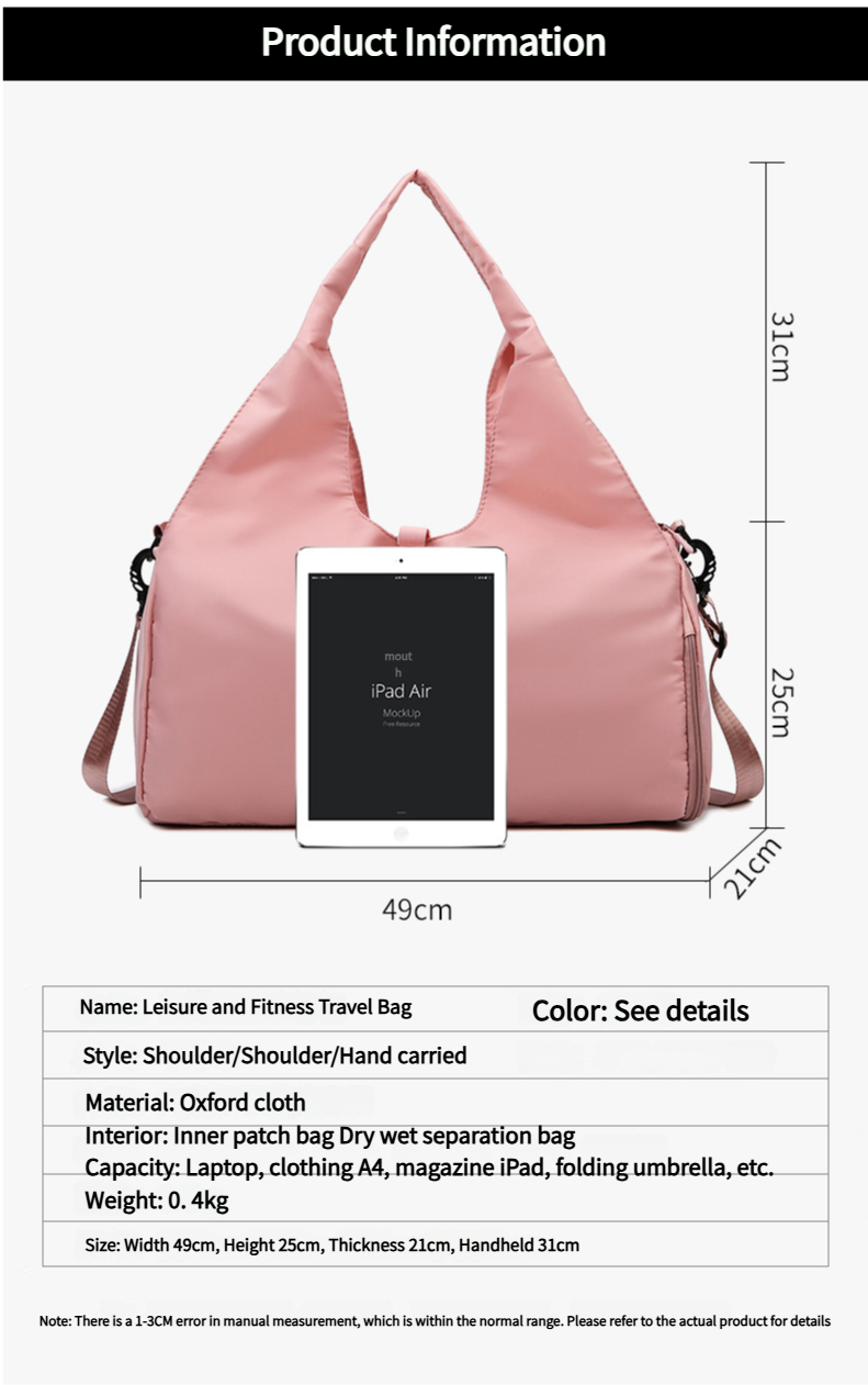 Upgrade your routine with a stylish and practical women’s gym and travel duffle bag designed to keep your gear clean, separated, and easy to carry. Crafted from durable water-resistant Oxford cloth, this blush pink sports bag combines a modern look with real everyday function.